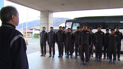遠野高校サッカー部が全国大会へ向け出発しました。きのう(20日・日曜日)の朝、全国大会へ向けて出発したのは、サッカー部の主力選手25人です。バスに荷物を積んだ後、選手たちは、出発を前に遠野高校の熊谷渡副校長にあいさつをしました。熊谷副校長は「第一試合に向けて長丁場の遠征となります。体調を十分整え、試合では最高のパフォーマンスを出せるように集中して取り組んでください」と選手たちを激励していました。関東方面へ向け出発した選手たちは、今月30日(水曜日)から始まる全国大会に照準を合わせ調整に努めることになります。
