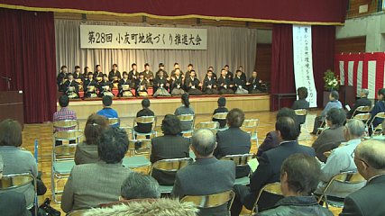 新春恒例の小友町地域づくり推進大会が先週9日(土曜日)、小友地区センターで開かれ、地域づくりに功労のあった人などが表彰されました。大会は、ことしも遠野西中学校の小友地区の生徒が歌いあげる氷口御祝(すがぐちごいわい)で幕を開けました。この推進大会は、小友町の歴史や文化の保存・継承、それに地域づくりの推進を目的に、毎年この時期に開かれています。大会では、地域づくりや産業振興などで功績のあった4人に小友町地域づくり連絡協議会の菊池勉会長から地域づくり功労者等表彰が贈られました。また、芸術や文化、スポーツの分野で模範となる活躍をした小中学生合わせて18人も表彰を受けました。このあと小友町地域づくり連絡協議会の菊池勉会長が「ことしも地域が一丸となって小友町の発展に努めていけるよう一緒に頑張っていきましょう」とあいさつしました。続いて、遠野市学校図書館協議会読書感想文コンクールの優秀賞を受賞した児童3人が作文を発表しました。このうち、高学年の部で優秀賞を受賞した小友小学校6年の菊池瑠唯さんは、ホーキング博士(はくし)の「宇宙への秘密の鍵」の感想文を発表しました。また小友町出身で、新渡戸(にとべ)文化短期大学非常勤講師の井上さく子さんが「豊かな自然環境を生きる力に」と題して基調講演を行いました。保育士を長きにわたって勤めた井上さんは講演の中で、「子どもが泣きたいときは『大丈夫泣いて良いんだよ』という気持ちで見守ることが大切で、徐々に人間関係が形成されていく」と話していました。訪れた人たちは、子どもの心や体を成長させるには自分で挑戦させることも大切だということを感じている様子でした。小友町地域づくり連絡協議会では、ことしも町民一丸となった活動を展開していくということです。