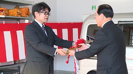 二戸市内の企業から遠野市消防本部にきのう(21日・木曜日)、軽自動車1台が贈られました。軽自動車を贈ったのは、二戸市に本社を構え、企業広告ののぼりや横断幕(おうだんまく)の印刷などを行うオノデラサインです。オノデラサインは、東日本大震災などの災害で日夜尽力している消防本部の活動に何かの助けになりたいと、避難訓練指導や業務連絡用に活用できる軽自動車を、今年度から、県内すべての消防本部に1台ずつ贈っていくということです。今年度は、本社がある二戸市と、東日本大震災において後方支援活動を行い「遠野モデル」を全国に発信した遠野に贈られ、平成32年度までの6年間で県内12ある全ての消防本部に順次贈呈されるということです。引き渡しキーをオノデラサインの小野寺社長から手渡された本田市長は「市民のみなさんの安心・安全のために有効に活用させていただきます」と感謝の言葉を述べました。市消防本部に贈られた軽自動車は、通常業務などでさっそく走行されるということです。