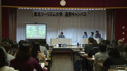 東北ツーリズム大学遠野キャンパスが、先週6日(土曜日)、たかむろ水光園で開かれました。東北ツーリズム大学は、遠野をはじめとする東北地方の農山村で培われてきたさまざまな地域資源をいかしたまちづくりを学び、参加者同士の交流を深める場として、平成16年から、遠野や福島県内の2カ所、宮城県、新潟県の5つの地域で開かれています。今回は「遠野に魅せられた若者達・移住者から学ぶこと」をテーマに開かれ、東洋大学社会学部の学生たちや、遠野民泊協会の会員などおよそ70人が参加しました。初めに、東洋大学社会学部青木辰司ゼミの学生たちが、去年9月に4泊5日で遠野に滞在し、文化や観光などについて調査・検証を行った結果を報告しました。続いて、去年春から遠野山・里・暮らしネットワークを拠点に都市農村交流について研修している法政大学現代福祉学部の近藤弘志さんが、1年間に遠野で得たことについて報告を行いました。最後に県外から遠野に移住し、さまざまな活動をしている3人がパネリストとして登壇し、遠野がなぜよかったのか、遠野に魅せられたものとは何かを、自身の体験を交えて紹介しました。参加した人たちは、遠野ならではの良いところを再認識し、客観的な意見などに興味深そうに聞き入っていました。この東北ツーリズム大学は平成28年度も開かれ、遠野では秋以降に開催される予定ということです。