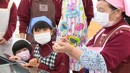 もうすぐ、ひな祭り。遠野中学校ではきょう(15日・月曜日)、3年生がひなまんじゅう作りに挑戦しました。ひなまんじゅう作りは、遠野市食育推進計画とおのっこプランの一環として、遠野市食生活改善推進委員の「地域に伝わる郷土料理を子どもたちに伝えたい」という思いと、遠野中学校の食育への思いがひとつになり、10年以上続いている遠野中学校の食育事業です。きょうは、3年1組と2組の生徒が午前と午後にわかれて、ひなまんじゅう作りに挑戦しました。生徒たちは、遠野市食生活改善推進委員の手ほどきを受けながら、「うるち米粉」と「もち米粉」を3対1の割合で混ぜ合わせて、生地に弾力が出るようじっくりじっくりとこねていました。力いっぱいこねたあとの生地に、ピンクや黄色などの彩りを加えたあと、あんこを包み、思い思い好きな型にはめたり木ベラを使って器用に桜や菊などの形に仕上げていました。なお、今週木曜日(18日)には、3年3組と4組の生徒たちがひなまんじゅう作りに挑戦し、地域の食文化に触れるということです。