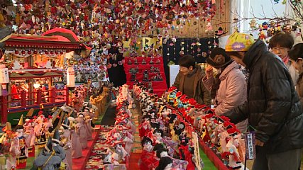 あす(19日・金曜日)からの遠野町家のひなまつりを前に、一足早く松崎町の総合福祉センターでは、松崎ひなまつりが始まりました。松崎ひなまつりは、松崎町第7区ふきのとうの会が開催しているもので、つるしびな作りを通して地域のつながりをさらに深め、会員が作った作品の発表の場として、今回で8回目となります。会場にはひな人形や、15人の会員が作ったつるしびななど、5000点以上の作品が展示されています。また、会員が沿岸被災地の仮設住宅などを毎月訪問し、つるしびなの製作指導をしていることから、被災地の人たちが作ったつるしびなも展示されています。松崎ひなまつりは、来月、3月3日木曜日まで総合福祉センターで開かれています。