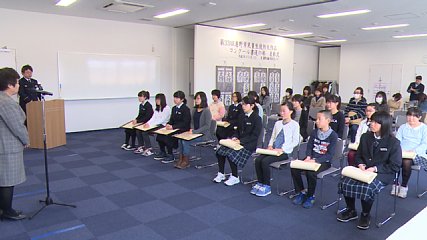 33回目となる遠野市児童生徒防火作品コンクール書道の部の表彰式が先週土曜日(5日)、総合防災センターで行われました。このコンクールは、市内すべての小中学校で結成されている少年消防クラブの育成活動の一環としてクラブ員が火災予防に対して関心を深めることなどを目的に行われました。今回は、135の作品の応募があり、入賞は、20作品となりました。表彰式では、遠野市少年消防クラブ育成会の菊池和子会長と遠野市消防本部の小時田光行消防長から児童・生徒一人ずつ賞状などが贈られました。なお、入賞した作品は、来週14日・月曜日までショッピングセンターとぴあで展示されています。