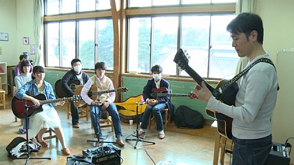 プロのジャズギタリストを招いてのジャズ教室が、先週金曜日(18日)に旧上郷中学校・遠野グローバルプラザで開かれました。この教室は、普段触れる機会が少ないジャズに親しみを持ってもらい、演奏の体験を通して楽しさに触れてもらおうと、小学生から高校生までを対象に開かれ、13人が参加しました。講師を務めたのは、プロのジャズギタリストである菅野義孝さんです。菅野さんは、去年9月に遠野東中学校でジャズ教室を開催しましたが、そのときの反響が良く、また教室をやりたいという菅野さんの思いから、今回の教室が実現しました。先週金曜日に開かれた教室では、ジャズにおいての音のアレンジの仕方や、リズムの取り方を、菅野さんが実演しながら生徒たちに教えていました。菅野さんの友人でこの教室を主催した、青笹町でギター工房を構える小田島尚人さんは「このジャズ教室をまた開催し、ジャズの楽しさを市内外の人たちに広めていきたい」と話していました。