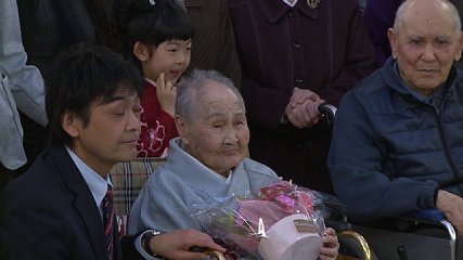 宮守町の女性が100歳の誕生日を迎え、先週15日(金曜日)みやもり荘で祝う会が開かれました。100歳を迎えたのは、綾織町で大正5年4月15日に生まれた君崎ナオさんです。祝う会には、娘などの親族などが出席しました。また、会場を訪れた飛内副市長は「これからも毎日楽しく過ごし長生きしてください」とお祝いの言葉を贈りました。このあと、玄孫の浅沼心空ちゃんが100歳のお祝いとして踊りを披露しました。君崎さんは、18歳の時に宮守町の米蔵さんと結婚し、農業や馬の飼育をしながら子ども8人を育て、現在は、みやもり荘で穏やかに過ごしています。君崎さんは、演歌歌手の氷川きよしさんのファンで、テレビに映っているのを見ると孫のように思え笑顔になるということです。なお、遠野市内の100歳以上の高齢者は、君崎さんを含めて21人で、最高齢は104歳となっています。