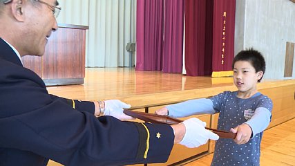優良な少年消防クラブと指導者に贈られる消防庁長官賞と総務大臣賞の表彰授与と報告が行われた様子をお伝えします。平成27年度優良な少年消防クラブ消防庁長官賞を受賞したのは、遠野北小学校少年消防クラブです。この賞は、3年間を通し、年3回以上定期的に活動している少年消防クラブの中から総務省消防庁が優良と認められたクラブがに贈られます。遠野北小学校少年消防クラブは、消防庁舎の見学や消防フェアなどに参加することで、防火への意識向上を図っていることに加え、長年、遠野まつりで防火みこしとして参加し、市民に広く防火の呼びかけをしたことが評価され、今回消防庁長官賞を受賞しました。このあと、中浜教育長が挨拶し、「すばらしい賞を受賞しました。おめでとうございます」と今回の受賞を祝っていました。また、遠野北小学校の佐々木一人校長は「これからもこの活動を継続し、防火への意識を高めたい」と話していました。なお、消防庁長官賞は全国で53団体が受賞し、このうち岩手県では北小学校を含め4団体が受賞したということです。