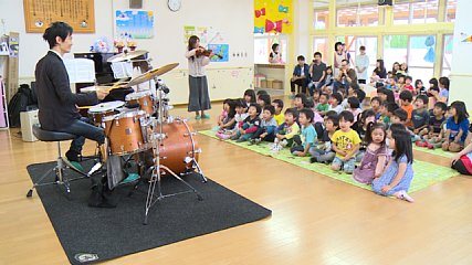 プロのドラマーと保育園児たちによる音楽交流会がきのう(22日・水曜日)白岩保育園で開かれました。白岩保育園を訪れたのは、プロのドラマーとして活躍している神保彰さんや遠野市出身のプロシンガーソングライター船越由佳さんなどですこの交流会は、子どもたちに楽器や歌を通じて、音楽に興味を持ってもらおうと開かれ、白岩保育園の園児や職員などおよそ120人が参加しました。職員から神保さんが紹介されると園児たちは、プロが奏でる演奏に合わせて、園の歌などを歌いました。このあとドラムを使ったリズム遊びで園児たちは、ドラムから鳴る音をしっかり聞き分けながら、手と足を使って上手にリズムをとっていました。なお、今夜6時半からはあえりあ遠野中ホール、あすは盛岡で、「神保彰ワンマンオーケストラ」が開催されるということです。