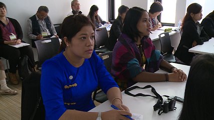 JICAの青年研修事業で防災について学ぼうと岩手県を訪れていたミャンマーの研修員たちによる報告会がおととい(27日・月曜日)、市民センター会議室で開かれました。防災研修で岩手を訪れたのは、ミャンマーの国家公務員や議員など23歳から36歳までの16人です。研修員たちは、今月15日(水曜日)から2週間の日程で総合防災センターや沿岸被災地を訪問し、後方支援の取り組みのほか復興状況などを視察したということです。おとといの報告会では、遠野山・里・暮らしネットワークやホストファミリーなどが出席するなか、研修員を代表してミャンマーの厚生省に勤めるトゥー・ミン・スウェさんがスライドショーで研修を振り返りました。また、トゥー・ミン・スウェさんは、今回の研修を通して今後、それぞれの地域がもっている特徴をふまえた災害対策をしていくことや、防災マップも、より地域に合うものとして見直していく必要があると話していました。なお、ミャンマーでの災害は、熱帯低気圧のサイクロンや山火事などがあげられていて、火事に関する災害が全体の80パーセントをしめているということです。研修員たちは、きのう(28日・火曜日)遠野を出発し、きょう(29日・水曜日)、ミャンマーに帰国するということです。