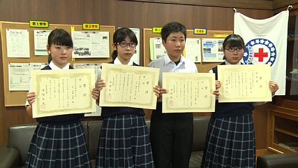 今年度の中学生水の作文岩手県コンクールで優秀賞などを受賞した生徒に対する表彰式がきのう(14日・木曜日)遠野東中学校で行われました。水の作文コンクールは、次代を担う中学生に水について理解を深め考える機会にしてもらおうと岩手県環境生活部が毎年開いています。38回目となった今年度は県内の中学校5校から53作品の応募があり、このうち遠野東中学校2年の菊池美帆さんが優秀賞、佐々木勇哉君・細川和可奈さん・宮澤花畝さんの3人が佳作を受賞しました。遠野東中学校の2年生は、昨年度、授業で岩手大学に足を運び「人が使える水は地球にどのくらいあるか」について講義を受け、その後、市内3カ所の川で水質を調査したということです。菊池さんは、それらの経験や資料で調べたことを元に、本当に使える水の少なさや、世界にはきれいな飲み水を手にすることができずに亡くなってしまう子どもがいることに触れながら、自分たちが節水などの行動をすることですべての人に平等にきれいな水が行き渡るよう願いを込めて作文を書いたということです。このコンクールでは、県内で優秀賞・佳作あわせて10作品が入賞したうち、遠野東中学校から4作品が入賞しました。なお、優秀賞に選ばれた菊池さんの作品は、8月に国土交通省が主催する「全日本(ぜんにほん)中学生水の作文コンクール」に岩手県代表として推薦されるということです。