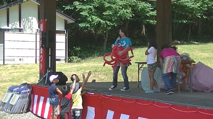 宮守町達曽部の白石(しらいし)地区で毎年恒例の「稲荷穴まつり」が開かれました。その様子が届きましたのでお伝えします。このまつりは、全国に誇る稲荷穴の名水と特産ワサビの地域資源を活用し地域の活性化と地域間の交流を図ろうと、達曽部地域づくり連絡協議会が毎年8月の第1日曜日に開いています。ことしも、地元の郷土芸能である「湧水神楽(わくみずかぐら)」「行山流湧水鹿踊(ぎょうざんりゅうわくみずししおどり)」の披露のほか、そば・スイカの早食い、ニジマス釣りや流しソーメン、バルーンアートショーなどさまざまな催し物で賑わったということです。また、達曽部児童クラブの子どもたちがわんこダンスやハンドベルを披露し、会場からは盛大な拍手が送られていたということです。なお、まつりにはおよそ300人が参加し、大いに盛り上がったということでした。