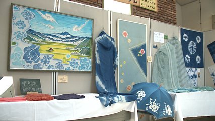 道の駅遠野風の丘では現在、見た目にも涼しい藍染めの展示会が開かれています。道の駅遠野風の丘の市民ギャラリーでは、染工房「青の会」による藍染めの展示が行われています。会場には反物やタペストリーなどおよそ50点が展示されています。中でも、遠野で育てた生の藍の葉を使って染めたという遠野ブルーのストールは、青空のような美しい水色で訪れた人の注目を集めていました。この遠野ブルーの素となる藍を栽培している多田裕一さんは「うまく色や模様がでているか染め終わるまでわからないが、そこがわくわくする」と藍染めの魅力を話していました。この展示会は今週20日(土曜日)まで開かれています。