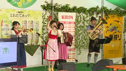 おいしいビールと遠野の旬の食材を味わいながら一緒にその収穫を祝う遠野ホップ収穫祭。初日のオープニングセレモニーでは、緑峰高校の生徒がこの日朝収穫したとれたての遠野産ホップが生産者からキリンビールに渡されました。ことしも2日間で去年の2倍近くにあたるおよそ4500人が会場を訪れ、遠野産ホップを使ったビールはもちろんのことさまざまな食材も味わい収穫祭を堪能していました。なお、来月25日に遠野産ホップを贅沢につかった一番搾りとれたてホップ生ビールが全国発売されるということです。