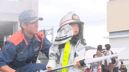 総合防災センターで先週土曜日(10日)消防フェアが開かれました。このフェアは、総合防災センターが開庁して5年が経過した中、市民に改めて後方支援資料館などを見てもらうことで防災を伝承していく機会に。また、消防・防災体験を通して市民に住宅防火や防災対策への関心をもってもらおうと、救急医療週間のこの時期に毎年開かれています。会場となった総合防災センターには、親子連れなどおよそ250人が集まり、放水やレスキュー・心肺蘇生法など普段なかなか経験することができないさまざまな消防体験をしました。放水体験コーナーでは、消防士さながらの防火服に身を包んだちびっこ消防士たちが火元に見立てた標的をめがけて果敢に挑んでいました。消防車と救急車に乗ることができるコーナーで子どもたちは、目を輝かせながら車内の機材を眺めたり担架に寝転んだりしながら貴重なひとときを過ごしていました。また、会場では遠野北小学校の6年生34人が薬研太鼓を披露し、会場に集まった人たちからは盛大な拍手が送られていました。続いて、市内の小学4年生が社会科見学で後方支援資料館を訪れた時の感想文と、小学4年生から中学生までを対象に開かれた防火を呼びかけるコンクールのポスターの部に対する表彰式が行われました。感想文の表彰では、20作品の応募があった中から選ばれた6作品に対して、ポスターの表彰では、88作品の応募があった中から選ばれた16作品に対して、それぞれ本田市長などから賞状と記念品が贈られました。なお、ポスターの入賞作品は、全国火災予防運動にあわせて11月9日からとぴあに展示され、感想文については、すべての応募作品が総合防災センター隣りにある後方支援資料館に展示され、随時閲覧できるということです。消防フェアの最後には防火綱引きが行われ、10人の消防士と45人の子どもたちが対戦しました。結果は、見事、子どもたちが勝利しました。また、会場内では、炊き出し訓練で作られたおにぎりが訪れた人たちに配られました。松崎町の遠野市総合食育センター「ぱすぽる」では、消防フェアの日の朝、停電を想定した訓練が行われ、調理師や栄養士などが参加しました。職員たちは、非常用発電が正常に動くかの確認や屋内消火栓の使い方を消防職員に教わるなどいざという時に備えていました。また、炊き出し訓練として消防フェアに訪れる人たちに配るおにぎり200人分の米を非常用発電を使用した状況で炊き、普段と違う環境での問題点や炊きあがるまでにどのくらいの時間がかかるかなどを確認していました。炊きあがったご飯は早速消防フェアが行われている総合防災センターに届けられたあと、遠野市婦人消防協力隊の隊員たちと消防職員たちが協力して作った豚汁とともに会場に訪れた人たちに配られ、受け取った人たちは、おいしそうに食べていました。
