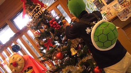 クリスマスまであと1週間ほどという中、白岩保育園にサンタクロースが訪れたということですが、遠野駅近くでは、なんと、カッパがクリスマスツリーに飾り付けをしていました!JR遠野駅前にある旅の蔵遠野。こちらにあるクリスマスツリーには、さまざまな飾りが付けられています。取材に伺うと、なんと、カッパがクリスマスツリーにキュウリを飾り付け・・・!?実は、旅の蔵遠野には、変装コーナーが設けられていて、カッパやザシキワラシなどをイメージしたヘルメットや杖などが用意されていて、楽しむことができるようになっています。みなさんも旅の蔵遠野を訪れ、遠野物語の世界を楽しんでみてはいかがでしょうか。Copyright(C) TonoCableTelevision. All rights reserved.