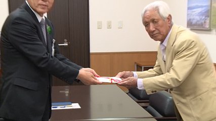 遠野市の子育て支援事業に役立ててくださいと、きのう(17日・水曜日)、市民から遠野市に現金30万円が贈られました。きのう、とぴあ庁舎を訪れたのは、遠野町の小松喜一さんです。小松さんは「将来を担う子どもたちのために役立ててください」と、現金30万円を本田市長に手渡しました。今回、市に寄付した小松さんは、遠野建設組合組合長や遠野職業訓練協会の会長などを歴任し、後継者の育成に力を注いできました。そして、去年、市勢振興功労者表彰を受けています。受け取った本田市長は「これからの遠野を支える人材育成と、少子化に立ち向かうための施策に役立てさせていただきます」と小松さんの厚意に感謝していました。なお、今回の寄付金は、遠野わらすっこプランに掲げている子育てに関するさまざまな事業に役立てられるということです。Copyright(C) TonoCableTelevision. All rights reserved.