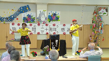金田一勝太郎さんと久子さん夫妻による慰問活動20周年記念公演が先週土曜日(22日)老人保健施設「とおの」で開かれました。金田一夫妻は、多くの人に元気を届けようと平成9年から現在に至るまで20年にわたりボランティアで市内外の福祉施設や保育園などを訪れて歌や手品などを披露し、去年の9月には公演1000回を達成しました。先週土曜日には、老人保健施設「とおの」で活動20周年の記念公演が開かれました。1023回目となる今回の公演では初めに、慰問活動20周年を祝って、施設の職員から金田一夫妻に花束が贈られました。続いて、手作りのウクレレとハーモニカを演奏しながら施設の利用者と一緒に歌を歌いました。最後に、水や風船などを使った手品を披露すると利用者からは拍手と歓声があがっていました。なお、金田一夫妻は来月も市内の福祉施設などで訪問公演を続けていくということです。Copyright(C) TonoCableTelevision. All rights reserved.