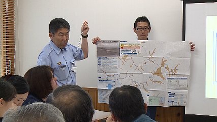 遠野市自主防災組織連絡会の地区別防災研修会が、きのう(21日・月曜日)から始まっています。この研修会は、去年の台風10号を教訓に水害時の危険個所や避難場所などを網羅した「遠野市土砂・浸水ハザードマップ」が、新たに作成されたことを受け、その概要を説明することで、地域の防災力向上を図ろうと、遠野市消防本部が開きました。1回目となったきのう、みやもりホールでは、宮守町の宮守地区を対象に開かれ、各自主防災組織の代表者や福祉施設の関係者など21人が集まりました。研修会では、参加者を前に消防職員が各世帯に配布されたばかりの「遠野市土砂・浸水ハザードマップ」を基に、マップの見方をはじめ、宮守地区の危険個所や避難場所などをわかりやすく解説していました。また、災害時に出される「避難準備・高齢者等避難開始」、「避難勧告」、「避難指示」の3つの避難情報についても改めて確認がされ、参加者たちは、メモを取りながら防災に対する意識を高めていました。さらにきのうの研修会では、来月10日・日曜日に実施される遠野市防災訓練の概要も示され、市消防本部では、災害から命を守るためにもたくさんの人たちの訓練への参加を呼び掛けていました。なお、地区別防災研修会は、今週25日・金曜日まで市内11カ所で予定されていて、あす23日(水曜日)は、小友町、附馬牛町、土淵町で開かれるということです。Copyright(C) TonoCableTelevision. All rights reserved.