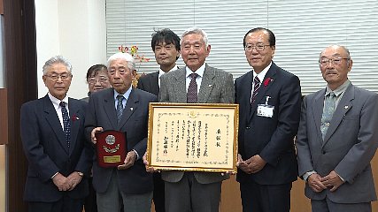 5年に1度の優良市区町村老人クラブ連合会厚生労働大臣表彰」を遠野市老人クラブ連合会が受賞し、おととい(24日・火曜日)本田市長に報告をしました。この日、報告に訪れたのは、遠野市老人クラブ連合会の菊池秀智会長などです。菊池会長は、今月19日(木曜日)に京都府で行われた第46回全国老人クラブ大会」に出席し、優良市区町村老人クラブ連合会厚生労働大臣表彰」を受けてきました。この表彰は、5年に1度行われ、今回は全国で46団体が受賞をしていて、岩手県内では、遠野市老人クラブ連合会だけが受賞をしています。遠野市老人クラブ連合会は、壮年部会が各種スポーツ大会を企画、事業部会が会員交流のための研修事業を実施、女性部会が趣味・文化活動に加えてグラウンドゴルフ大会を開催するなど、各部会が組織的に活動を展開しています。菊池会長は、先輩たちが築いた実績を守り、継続してきたことや会員の加入率の高さが組織力となって、今回の受賞につながったのだと思う」と話していました。遠野市老人クラブ連合会の現在の会員は、およそ2500人で、60歳以上の5人に1人が加入している状況となっていて、加入率は、全国と比べても高いということです。報告を受けた本田市長は、今回の受賞を祝福し、みなさんの豊富なノウハウを、地域の活性化のために活かしていってほしい」と話していました。Copyright(C) TonoCableTelevision. All rights reserved.