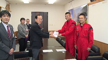 先月の花の寄付に続いて市内の自動車販売業者が先週金曜日(10日)、子育て支援に役立ててほしいと遠野市に寄付金を贈りました。とぴあ庁舎を訪れたのは、松崎町にある駒形モータースの佐々木洋平取締役社長と千葉健悦店長の2人です。佐々木社長と千葉店長は、本田市長に子育て支援に役立ててほしいと先月8日に開催された自社の感謝祭イベントでの益金12万8千円を手渡しました。社員19人中6人が子育てをしているという駒形モータースでは、毎年、感謝祭イベントでの益金を遠野市に贈っていて、今回の寄付を含めると5回目となり、これまでの寄付の総額は、およそ56万8千円となっています。寄付金を受け取った本田市長は、この寄付をしっかりと受け止め、子育てするなら遠野を形にするためにも活用させていただきます」と感謝していました。なお、市では、今回の寄付金を遠野市わらすっこ基金に役立てるということです。Copyright(C) TonoCableTelevision. All rights reserved.