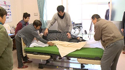 高齢者を対象とした介護補助講習会がきょう(21日・火曜日)、青笹町のふれあいプラザで開かれました。この講習会は、人手不足が懸念される介護業界において、一人でも多くの高齢者に就業に必要な技術や知識を身に付けてもらい活躍の場を広げようと岩手県シルバー人材センター連合会が開きました。きょうの講習会では、在宅で介護をしている人など8人が参加する中、遠野長寿の郷の生活相談員松田学さんを講師に午前中は介護についての座学と午後は車いすの操作といった実技体験が行われました。午前中の座学で講師の松田さんは、利用者個人の尊厳を保持し、一人一人がその人らしい生活を継続できるようにすることが介護の目標と示したうえで、介護のベースとなる考え方についても話していました。ほかにも午前中は、より知識を深めてもらおうと、介護保険制度や介護サービスの種類、認知症などの説明もされていました。また、午後は車いすの操作や寝たきりの人の起こし方など介助方法を学ぶ実技体験が行われました。参加者たちは、実際に介護する方と介護される方に分かれ、介助方法を実践しながら基礎的な知識や技術などに理解を深めた様子でした。なお、遠野市シルバー人材センターでは、今後も高齢者が活躍できるよう、様々な講習会を開いていくということです。Copyright(C) TonoCableTelevision. All rights reserved.