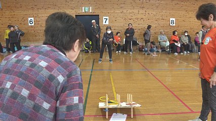 遠野市民輪投げ大会が、今週日曜日(26日)総合福祉センターで開かれました。この大会は、遠野市運動普及推進員協議会(かっぱの会)の設立20周年記念事業として、市民に感謝の気持ちを伝え、会の活動を広く知ってもらう機会にしようと開かれました。かっぱの会は、ボランティア活動を通して市民の健康づくりのため運動普及に努めようと平成9年に結成され、現在52人が会員となっています。また、かっぱの会では、会員の指導技術を高めるための研修会開催や輪投げなどの誰でもできる運動普及活動のほか、地域で開催される健康づくり研修会などの講師・スタッフとして活動しています。今週日曜日に開かれた輪投げ大会には、子どもから大人までおよそ100人が参加し、団体戦と個人戦が行われました。この輪投げ大会は、ビンゴゲームのように縦・横・ななめそれぞれに1列そろって輪が入ると30点が加算されるかっぱの会オリジナルルールで競われました。参加した人たちは、ビンゴになるように数字に狙いをさだめ真剣な表情で輪を投げ、仲間同士声援を送りあいながら和気あいあいと輪投げを楽しんでいました。また、輪投げのあとには、軽体操(けいたいそう)「ロコモ体操」で音楽に合わせて楽しく体を動かしていました。なお、輪投げ大会の結果はご覧の通りとなっています。かっぱの会への参加を希望される方は、かっぱの会事務局までお願いします。Copyright(C) TonoCableTelevision. All rights reserved.