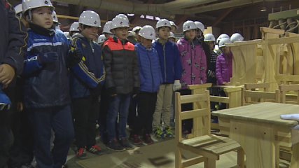 遠野小学校の5年生がおととい(4日・月曜日)、森林学習のため青笹町の工場などを訪れ、県産材を使った机とイスの製造の様子を見学したほか、木工教室で木に親しみました。この学習は、県産材を活用した机とイスを実際に利用する遠野小学校の5年生たちに、地場産の木を使って地元の工場で製造されていることを伝え、木の魅力などを感じてもらおうと、遠野市が岩手県の補助金を活用して開きました。初めに、「ノッチ・アート遠野」を訪れた児童たちは、業務部長の佐々木孝博さんに工場を案内してもらいながら、遠野産などの県産材を使った机とイスがどのように作られているかを見学しました。児童たちは、机とイスが形になっていく一連の流れを興味深そうに見学しながら、地元の工場で人の手作業もありながら大事に作られていることを学んでいた様子でした。このあと、森林総合センターの多目的ホールに移動し、木工教室が開かれました。木工教室では、市内の工務店などから8人の講師が指導に入りました。児童たちは、本棚を作るグループとイスを作るグループに分かれ、図面を参考に寸法を測ったりノコギリを使って木を切ったりしながら、木のぬくもりを肌で感じ、木に親しんでいた様子でした。Copyright(C) TonoCableTelevision. All rights reserved.