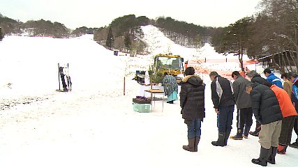 上郷町の赤羽根スキー場でおととい(23日・土曜日)、今シーズンのオープンを前に安全祈願式が行われました。この日は、中浜教育長のほか赤羽根スキー場の関係者およそ30人が集まりました。そして、今シーズンの無事故を祈願しました。赤羽根スキー場を管理する遠野施設管理サービスによりますと、昨シーズンは、1月中旬から51日営業となり、市内外から7000人以上が訪れたということです。予定では、きのう24日(日曜日)から今シーズンの営業が始まるところでしたが、滑走できる目安となる圧雪30cmには届かない無い状態で今後の積雪に期待されます。なお今シーズンは、営業が始まってから来年3月4日まで予定されていて、2月3日には赤羽根雪まつりと遠野市スキー大会も開催されることになっています。なお、赤羽根スキー場のゲレンデ情報については、電話65-3535、または、赤羽根スキー場のホームページで確認できます。Copyright(C) TonoCableTelevision. All rights reserved.