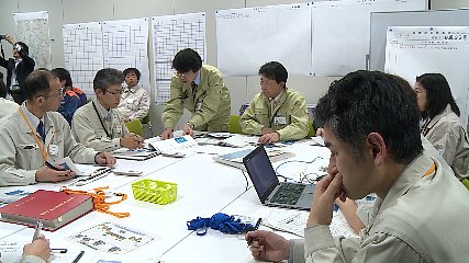無人航空機協定締結の後に行われた遠野市災害対策本部を市役所本庁舎に移しての運営訓練についてお伝えします。この訓練は、ことし10月、台風21号が最接近した際、本庁舎の供用開始後初めて遠野市災害対策本部を設置し災害対応にあたったことを受け、その際の機器の整備や本部の運営に係る課題を解決し、今後の災害対応を迅速かつ適切にするよう実施されました。災害想定は、6つです。まずは、震度4の地震が発生し、災害警戒本部が設置された場合の被害状況収集や移動系防災行政無線を活用した情報伝達訓練です。この訓練では、地震発生による警戒本部設置にともなう地区センターや地区センター班の役割確認、移動系防災行政無線の疎通について確認されました。次に、台風の接近にともなう豪雨による住家被害の情報が多く寄せられている場合として、災害状況の取りまとめや報道関係者に発表する資料を適切に作成できるか検証しました。続いて、大雨による災害状況を見に行った家族が夕方になっても帰ってこないとの連絡があった場合の無人航空機を活用した災害現場との情報連携訓練で、協定を結んだ栄組も参加しました。訓練では、災害発生時に無人航空機を活用してどのような映像が撮影できるかや実写映像を伝送できるかなどが検証されました。4つ目は、テレビ会議システムを活用した本庁舎と総合防災センターとの情報伝達訓練です。状況は、原野・山林火災が発生し、近くには集落もあり強風のためさらに延焼する恐れがある場合とし、消防本部通信指令室からテレビ会議システムを使って延焼範囲について説明され、有効に機能していることが確認されていました。5つ目は、マルチ映像システムを活用した気象情報などの情報収集訓練です。状況は、県から土砂災害警戒情報の発令、記録的短時間大雨情報に関する避難勧告など助言指導の通知があった場合とされました。訓練では、マルチ映像システムを利用して、どのような情報を共有することができるか検証され、河川監視カメラ、河川水位、県の災害情報が映し出されていました。最後の訓練は、気象情報などを活用した水害を想定した避難勧告などの発令訓練でした。状況は、附馬牛町、土淵町、上郷町一帯に土砂災害警戒情報が発令された場合とされ、遠野テレビのIP告知やL字放送、ホームページなどさまざまな方法で告知を確実に実行できるか検証していました。これらの6つの訓練は、およそ25分で遂行されました。訓練の終わりに、本田市長から講評がありました。訓練を経て、本部員などは、さまざまなシステムの動作を再確認するとともに、万が一災害が発生した場合に今後、本部を本庁舎に設置しても迅速で確実な対応ができるよう、心構えを整えていました。Copyright(C) TonoCableTelevision. All rights reserved.