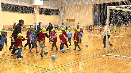 市内の保育園に通う年長園児がきょう(21日・水曜日)市民体育館に集まり、サッカーで交流を深めました。この交流会は、春から小学生になる園児たちに、遠野の身近なサッカーで身体を動かしながら仲間づくりをしてもらおうと開かれました。きょうは、市内の10の保育園から年長園児・およそ130人が参加しました。初めに、園児たちは、岩手県サッカー協会の2人のコーチと一緒に、ふれあいゲームでウォーミングアップをしました。ふれあいゲームで仲を深めた園児たちは、7つのチームに分かれて、メインのサッカーのミニゲームを楽しみました。園児たちは、ボールを追いかけて体育館を駆け回ったりゴールを決めて喜びあったりしながら多くの仲間たちと交流を深めていました。Copyright(C) TonoCableTelevision. All rights reserved.