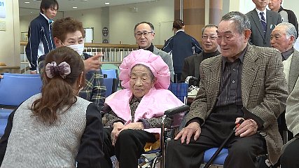 附馬牛町の女性が先週金曜日(2日)100歳の誕生日を迎え、利用している宮守町の「やまゆりの里」でお祝い会が開かれました。100歳を迎えたのは、大正7年3月2日生まれの菊池ノブさんです。お祝い会では、菊池さんの子どもたちや孫、「やまゆりの里」の仲間などが菊池さんを囲み、みんなで100歳を祝いました。初めに、遠野市から菊池さんに100歳のお祝いとして記念品と花束が贈られ、家族からもプレゼントが手渡されました。菊池さんは、3人兄弟の長女として附馬牛町に生まれ育ち、18歳に結婚して婿養子をもらったあと5人の子宝に恵まれ、今では、孫が9人、ひ孫が11人、玄孫が6人いるということです。夫とともに稲作や馬、牛など農業に一生懸命励んできた菊池さんですが、好きなことは、山歩きや山を眺めることで、77歳の頃には、息子たちと一緒に早池峰山に登ったということです。その時の山頂からの景色が絶景でとても良い思い出だと家族に話しているということです。この日は、職員が施設で踊りの披露をすることになっていて、菊池さんの100歳の誕生日に花を添える形で、会場を和ませていました。遠野市によりますと、市内の100歳以上の高齢者は菊池さんを含めて18人で、最高齢は、104歳ということです。Copyright(C) TonoCableTelevision. All rights reserved.
