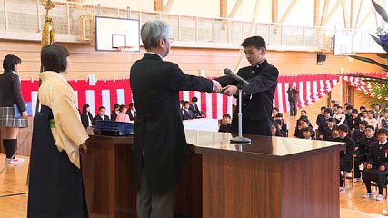 市内6つの小学校できょう(20日・火曜日)卒業式が行われました。きょうは、遠野・遠野北・小友・附馬牛・上郷・達曽部の6つの小学校で卒業式が行われました。このうち、遠野北小学校では、49人の卒業生が旅立ちの日を迎えました。式では、一人一人の名前が呼ばれ佐々木一人校長から卒業証書が手渡されました。卒業証書を受け取った卒業生は、これまで育ててくれたお父さんやお母さんに感謝の気持ちを込めて卒業証書を渡していました。佐々木校長は、「夢をしっかりと持って夢の実現のために努力する充実した中学校生活を送ってください」と卒業生にはなむけの言葉を贈りました。最後に、卒業生が在校生やお世話になった先生・地域の人達に感謝の気持ちを込めて合唱を披露しました。卒業式が終わると各クラスで最後の学級活動が行われました。担任の先生が「お子さんの手を握ってみてください。入学式の時に小さかった手がこんなに大きくなりました」と話すと保護者は、子どもと手をつないだり大きさを比べたりして、6年間で心も体も成長した子どもの姿に喜びを感じている様子でした。なお、遠野市教育委員会によりますと、今年度・平成29年度市内の小学校卒業生は、203人が学び舎を巣立ったということです。Copyright(C) TonoCableTelevision. All rights reserved.