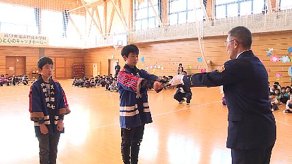 遠野北小学校の少年消防クラブが総務大臣から特に優良な少年消防クラブとして表彰を受け、きょう(19日・木曜日)、全校児童に伝達されました。きょう、学校行事のため室内運動場に集まっていた331人の全校児童に、行事終了後、島香実副校長から遠野北小学校少年消防クラブが総務大臣賞という大きな賞を受賞したことが知らされました。表彰の伝達では、全校を代表して児童会長の菊池優空君と副会長の山屋翔君に、遠野市消防本部の小時田光行消防長から表彰状と表彰旗が手渡されました。総務大臣が特に優良と認めたクラブだけに贈られるこの賞は、今回、全国で24団体が受賞、県内では遠野北小学校1団体のみが受賞しました。およそ60年前に結成された遠野北小学校少年消防クラブは、定期的な避難訓練の実施や消防フェアでの薬研太鼓の披露、また、遠野まつりに「防火みこし」として参加し市民に防火を呼びかけるなど、長年の取り組みが評価されたということです。小時田消防長は、児童たちのおじいちゃんおばあちゃん世代から引き継いで安心で安全なまちづくりを進めてきたことに感謝を伝え、これからの活躍も期待していました。なお、市内の団体でこの表彰を受けたのは、遠野北小学校少年消防クラブが初めてということです。Copyright(C) TonoCableTelevision. All rights reserved.