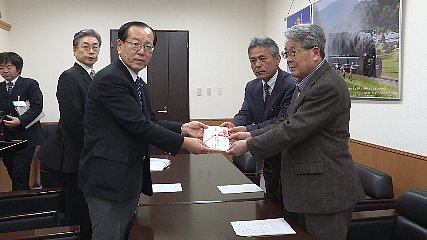先月開催された三陸コンサートで集められたお金がきょう(19日・木曜日)遠野市に贈られました。ことしで7回目となる三陸コンサートは、東日本大震災により被害を受けた沿岸地域の早期復興を願い6年前から開催されていて、今回は、遠野中学校のほか遠野・盛岡・釜石・大槌で音楽活動をしている4組が出演しました。きょうは、めがね橋復興応援三陸コンサート実行委員会の八重樫正昇会長と佐藤良治副会長がとぴあ庁舎を訪れ「復興支援に役立ててください」とコンサートで集められた寄付金およそ18万円を本田市長に手渡しました。受け取った本田市長は、「この寄付をしっかりと受け止めて、震災復興のための遠野市としての役割を果たしていきたい」と感謝の言葉を述べていました。なお、めがね橋復興応援三陸コンサート実行委員会から遠野市への寄付は7回目で、総額およそ120万円となっています。これまでに東日本大震災後方支援活動の普及・啓発などに使われたということです。なお、きょう贈られた寄付金も災害支援金として復興支援事業に役立てられるということです。Copyright(C) TonoCableTelevision. All rights reserved.