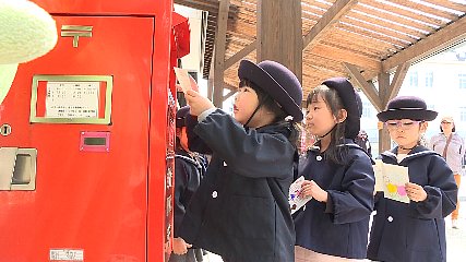 先週金曜日の4月20日は、「郵政記念日」です。これに合わせて開催されたポスト感謝祭では、光の園幼稚園の園児たちが感謝を込めてポストをピカピカに磨きました。遠野郵便局と遠野地区郵便切手類販売所では、毎年4月20日の「郵政記念日」に合わせてポストに親しみ心を届ける手紙・はがき文化を振興しようとポスト感謝祭を開催しています。参加した光の園幼稚園の5歳児11人は、遠野駅前に設置されたポストを囲んできれいに磨きました。カリンちゃんもその様子を温かく見守っていました。ぴかぴかに磨かれたポストには、このあと、園児たちがお母さんなどに描いたハガキを投函し、手遊びを披露してポストに感謝の気持ちを伝えていました。Copyright(C) TonoCableTelevision. All rights reserved.
