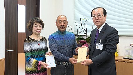 東日本大震災の復興を応援しようと、先週、遠野市と友好都市を結ぶ熊本県菊池市の市民が遠路はるばる遠野を訪れ、熊本県の特産品などを届けました。先週、遠野を訪れたのは、東日本大震災から断続的に災害復興支援活動を行ってきた熊本県菊池市の堀江清次郎さんと妻の昭子さんです。堀江さんは、7年前の震災の年、菊池市から遠野までおよそ2000キロの距離を丸一日かけてトラックを運転し米やメロンなど菊池市の特産品を中心にして支援物資を運び、5年前にも遠野を訪れています。そして、今回、2年前の熊本地震で応援してくれた遠野への感謝の思いと、震災を風化させてはいけないという復興への熱い思いを胸に、3回目の来訪となりました。先週金曜日(18日)は、被災沿岸地域の見守りなど復興応援活動を行っている遠野町の遠野山・里・暮らしネットワークを訪れ、寄付金のほか、菊池市の特産品・七城メロンや、益城町のさつまいも1トンなどを贈りました。このあと、穀町の希望の郷「絆」サポートセンターにさつまいもを届け、利用者たちと交流を深めました。堀江さん夫婦は、このほかにも、遠野市に現金20万円を寄付しています。本田市長は、7年前、2人が遠野に駆けつけてくれた時の感動を振り返りながら、「ご夫妻の熱い思いを重く受け止め、被災地の本格復興に向けて遠野として手伝っていきたい」と気持ちを強めていました。なお、堀江さん夫婦は、自分たちの行動が震災を風化させない一助になればと、山里ネットのスタッフと共に陸前高田市にある保育園や小学校を回り、さつまいもを配布したりわたあめ作り体験を企画したりしながら、子どもたちとの交流も行ったということです。Copyright(C) TonoCableTelevision. All rights reserved.