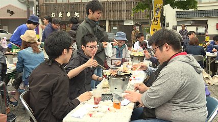 今回で6回目となるバケツでジンギスカン大会が、おととい(10日・日曜日)遠野駅前で開催されました。このイベントは、遠野ならではのバケツを使って食べるジンギスカンを広めるとともに、多くの人に楽しんでもらおうと、市民有志が集まってできた団体遠野ジンギスカン推進委員会が開きました。会場には、遠野市内外から大勢の人が訪れ、開始から1時間ほどで予定していたジンギスカン200食は売り切れてしまい、さらに80食を追加するという盛況ぶりでした。また、親子遠足で釜石市からSL銀河に乗って遠野を訪れた親子34人も参加し、バケツで食べるジンギスカンを堪能していました。訪れた人たちは、ジンギスカンに舌鼓を打ちながら家族や友人との会話を弾ませ、イベントを満喫している様子でした。Copyright(C) TonoCableTelevision. All rights reserved.