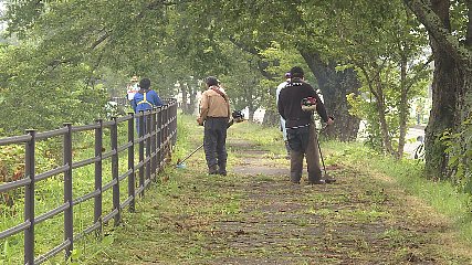 お盆を迎える前に地域の環境を整えようと、おととい(5日・日曜日)この時期恒例の市内一斉河川清掃が行われました。この河川清掃は、宮守を除く市内8つの地区で毎年一斉に実施されています。このうち綾織町第1区では、愛宕橋から日影橋にかけての猿ヶ石川沿いを中心に早朝5時からおよそ60人が集まり草刈りなどで汗を流しました。周辺は、中高生が通学で利用したり散歩をしたりする人が多く、春にも草刈りが行われたということですが、新たに伸びた草を町民が手際良く刈りとってより良い環境づくりに努めていました。遠野市によりますと、この日は、およそ5600人の市民が清掃活動に参加したということです。また、宮守町では、6月に河川清掃が行われていて、930人を超す町民が環境整備に協力したということです。Copyright(C) TonoCableTelevision. All rights reserved.