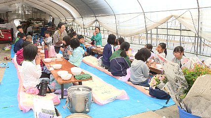 上郷児童館の児童たちがおととい(7日・火曜日)、上郷町地域づくり連絡協議会が主催する上郷お宝バスツアーで、地域の歴史文化に触れました。このツアーは、地域の歴史文化を児童に知ってもらい郷土愛を育んでほしいと、開催されました。ツアーに参加した上郷児童館の児童20人は、上郷町の遠野遺産や産直、花農家の計4カ所をバスで巡りました。この中で、遠野遺産に認定され遠野七観音の3番札所として知られている平倉観音では、建物の歴史について学んだ他、病を除き、罪を清め、幸せをもたらすとされている合計11面の顔を持つ本尊を見学しました。続いて、バスに乗ってさらに上郷の奥へと移動した児童たちは、花農家の駒込和男さんのお宅を訪ねました。駒込さんのお宅は、トルコキキョウやアルストロメリアなど10種類の花を育て県内外へと出荷している花農家30年のお宅です。駒込さんは、「挑戦なくしてチャンスはない」と、寒冷地では珍しいパッションフルーツを育てることにも挑戦しており、自宅の玄関前には、収穫にはまだ早いですが緑色をしたパッションフルーツの実がしっかりと育っていました。駒込さんのお宅では、ハウスで栽培されているアルストロメリアの花の収穫体験が行われ、児童たちは、色とりどりのアルストロメリアの花を丁寧に切り取っていきました。駒込さんから児童たちには、この日収穫したアルストロメリアと一緒にヒペリカムなどの花もプレゼントされ、「お花を好きになってください」とメッセージも伝えられていました。このあと、お昼時間には、駒込さんがセッティングしてくれたハウスの中で、持参したおにぎりと一緒に地元のアクティブマミーの人たちが作ってくれた豚汁を食べ、この日学んだことを振り返るクイズも行われていました。児童たちは、ツアーを通して、地域の人や歴史文化に触れ、郷土愛を育んでいた様子でした。Copyright(C) TonoCableTelevision. All rights reserved.