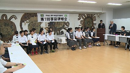 姉妹都市締結からまもなく1年を迎えるアメリカ・テネシー州、チャタヌーガ市を訪問する今年度の中高生海外派遣交流事業第1回事前研修会が、先週金曜日(8月31日)、市民センターで開かれました。チャタヌーガ市への海外派遣交流事業は、国際化に対応できる人材の育成を目的に、平成11年度から中学生を対象に行われてきましたが、今年度からは、市が取り組む高校魅力化の一つとして、高校生も対象に実施されます。今年度は、市内の中学、高校から選ばれた中学生9人と、高校生8人の合わせて17人がチャタヌーガ市へ派遣されることになっています。研修初日となった先週、金曜日は、派遣生や保護者、引率者などが集まり、顔合わせが行われました。はじめに主催者を代表して遠野市教育文化振興財団の及川増コ理事長が、「遠野の代表として、チャタヌーガ訪問の役割を果たしてほしい。」と挨拶したあと、派遣生と引率者がそれぞれ抱負などを発表しました。つづいて、派遣の日程について事務局から説明がありました。中学生については、来年1月4日から16日までの11泊13日の日程で、ホームステイをしながらCSLA校の生徒たちと交流を深めてくるということです。また、高校生については、来年1月4日から19日までの14泊16日の日程で、チャタヌーガ市のCSAS校の生徒たちと交流を深めるほか、ニューヨーク市での大都市研修を行う予定ということです。なお、派遣生たちは、出発までの間に開かれる5回の事前研修に参加し、日常英会話や研修テーマを決めるなど、準備を進めていくということです。Copyright(C) TonoCableTelevision. All rights reserved.