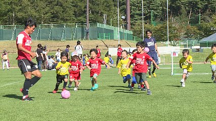 誰でも参加できる楽しいサッカーフェスティバル、JFAユニクロサッカーキッズin岩手がきのう(23日・日曜日)、遠野運動公園を会場に開催されました。このサッカーフェスティバルは、子どもたちにスポーツの素晴らしさやピッチを駆け回る楽しさを体験してほしいと、日本サッカー協会と岩手県サッカー協会が、去年に続いて遠野市を会場に開きました。きのうは、午前の部と午後の部の2回に分けて開催され、岩手県内から集まった6歳以下の子どもたちおよそ500人がサッカーを楽しみました。この内、午後の部の開会式では、スペシャルゲストとして、グルージャ盛岡の菊池利三監督をはじめ、選手9人が紹介されると子どもたちから拍手が送られました。この後、チームごとに4つのコートに分かれ、前後半5分ずつの時間でミニゲームが行われました。子どもたちは、ピッチからボールがはみ出しても気にすることなく元気いっぱいにボールを追いかけていました。また、スペシャルゲストとして参加したグルージャ盛岡の選手たちと一緒にプレーする場面も見られ、プロの選手から必死にボールを奪おうとする子どもたちの姿も見られました。さらに会場では、キッズアトラクションコーナーが設けられ、そこでは、運営スタッフとしてサポートを行った遠野高校や遠野中学校のサッカー部のメンバーが子どもたちと楽しく触れ合っていました。秋晴れの中、開催されたきのうのサッカーフェスティバルで子どもたちは、スポーツの素晴らしさやピッチを駆け回る楽しさを感じた様子でした。Copyright(C) TonoCableTelevision. All rights reserved.