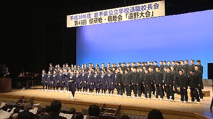 岩手県公立学校退職校長会の県研修・親睦会がきのう(4日・木曜日)から2日間、遠野市で開かれました。これは、岩手県公立学校退職校長会の各地区の文化を学ぶとともに会員同士の親睦を深めることを目的に、県内にある地区会の持ち回りで毎年開かれていて、14年に1回遠野市が会場となっています。初日となったきのう、市民センター大ホールには200人を超える会員が集まりました。開会行事でオープニングを飾ったのは、遠野西中学校の生徒による「氷口御祝」で、「遠野大会」開催に華を添えました。続いて、岩手県公立学校退職校長会の佐瀬壽朗会長や「遠野大会」の留場聰実行委員長があいさつしたあと、感謝状と記念品の贈呈などが行われました。開会行事が終わると、研修会では、初めに、遠野西中学校の全校生徒が東日本大震災犠牲者に捧げる「鎮魂の歌」と「プレゼント」の2曲を合唱で披露しました。また、歓迎アトラクションとして、青笹小学校によるしし踊りが披露されました。このほか、遠野文化研究センター前川さおりさんによる「おんな大名・清心尼と遠野」と題した記念講演も行われ、集まった会員たちは興味深そうに話しを聞いていました。なお、最終日のきょう(5日・金曜日)は、遠野市立博物館やとおの物語の館などの見学が行われたということです。Copyright(C) TonoCableTelevision. All rights reserved.