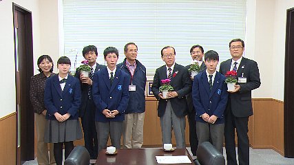 自動車販売などを行う企業が先週金曜日(5日)、緑峰高校の生徒が育てたシクラメンを遠野市に贈りました。シクラメンを贈るためとぴあ庁舎を訪れたのは、松崎町に本社を置く駒形モータースの佐々木精太郎代表取締役会長です。佐々木会長は、緑峰高校の生徒たちが頑張って育てた花を多くの人に見てもらえるようにと去年に続き、ことしもシクラメンの鉢100を買い上げて市に贈りました。この日は、緑峰高校生産技術科草花研究班の生徒たちも同席する中、受け取った本田市長は「『子育てするなら遠野』に市民一丸となって取り組むことでみなさんの志に応えていきたい」と今回の贈呈に感謝するとともに生徒たちの頑張りを称えていました。贈られたシクラメンは、市内の保育施設や元気わらすっこセンターで早速飾られています。Copyright(C) TonoCableTelevision. All rights reserved.