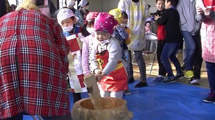 あおざさ子育て村で、先週火曜日(15日)小正月行事が行われました。その様子が届きましたのでお伝えします。あおざさ子育て村では、「みんなで築くふるさと遠野推進事業」の一括交付型モデル事業の補助を活用し、子どもたちが地域の人から伝承活動を学ぶとともに世代間交流の場として、小正月行事が行われました。青笹町の園児や児童、その保護者などおよそ120人が集まる中、園児と児童がかわるがわる楽しそうにもちつきをしたりみずき団子作りでは園児が家族と一緒に楽しそうに団子を丸めたりする姿が見られました。また、園児たちが保育園の玄関ホールに設置されたみずきに、色とりどりの団子やお菓子などをキレイに飾り付けていました。この他、五穀豊穣を願い松の葉を稲に見立てて雪に植える「お田植え」や、カラスが農作物にいたずらしないようにと歌を歌いながら小豆(あずき)もちをまく、「からすよばり」も行われていました。最後に、園児や児童たちは、自分たちがついたお餅やとん汁、お漬け物を美味しそうに食べ、地域の人たちとの交流を楽しんでいた様子でした。Copyright(C) TonoCableTelevision. All rights reserved.
