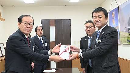 遠野市の環境保全活動に役立ててほしいと、おととい(19日・火曜日)遠野市に寄付金が贈られました。とぴあ庁舎を訪れたのは、あいおいニッセイ同和損害保険岩手支店の佐藤裕則支店長と岩手支店釜石支社の澤智支社長です。この保険会社では、紙の使用の削減による環境保護や寄付など社会貢献につながる活動に取り組んでいて、遠野市に今回、寄付金30万円を贈りました。この保険会社から遠野市に対する寄付は去年2月にも行われ、地域振興のためにと25万円が贈られています。また、おととしに、遠野市との協定を締結してからは、子育てや介護福祉、共生社会、交通安全について学ぶ場を提供するなど、遠野市の地方創生に関する取り組みの推進にも協力してきました。本田市長は、さまざまな形での応援に改めて感謝の気持ちを伝えると共に、今回の寄付金について、遠野の環境・景観を守る資金として活用することを約束していました。Copyright(C) TonoCableTelevision. All rights reserved.