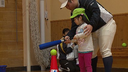 子どもたちに野球の楽しさを知ってもらおうと、おととい(12日、火曜日)、遠野高校野球部によるティーボール教室が市民体育館で開かれました。この教室は、野球やソフトボールに似たスポーツ、「ティーボール」を通じて子どもたちに野球の楽しさを知ってもらおうと、遠野高校野球部が地域貢献活動の一環として初めて開きました。この日は、神明保育園の年中児14人が遠野高校野球部の菊池暁監督をはじめ野球部員などに教えてもらいながら、ティーボールを体験しました。このティーボールは、バッティングティーと呼ばれる台にやわらかいボールを置いて、止まったボールを打者が打つ所から始まるスポーツで、年齢問わず誰もが気軽にできるのが特徴となっています。初めに園児たちは、野球部のお兄さんたちと一緒にボールを投げ合ってコミュニケーションをとったあと、さっそく、バットを握ってティーボールに挑戦しました。ほとんどの園児たちは野球未経験ということもあり、空ぶりをする場面が多く見られましたが、お兄さんたちからやさしく手ほどきを受けると、みるみる上達しバットにボールを当てることが出来ていました。なお、遠野高校野球部では、野球の楽しさを知ってもらうため、来年度以降も市内の園児を対象にしたティーボール教室を開いていくということです。Copyright(C) TonoCableTelevision. All rights reserved.