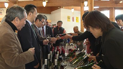 遠野と釜石で収穫したぶどうを使ったワインを楽しむ会が、先週土曜日宮守町の柏木平レイクリゾートで開かれました。被災地支援団体「遠野まごころネット」では、被災地域と中山間地域の活性化や、なりわい作りを目的に釜石では5年前から遠野では3年前からワイン用のぶどうの栽培に取り組んでいます。今回、初の遠野産ワインが完成したことから地域の人などにお披露目しようと、先週土曜日、遠野・釜石ワインを楽しむ会が開かれました。初めに、主催者の遠野まごころネットの佐藤正市理事長が、「やっと遠野産のワインが製造できた。今後、ぶどうの栽培面積と醸造本数を増やしていきたい」とあいさつし、ワインの完成を喜びました。今回初めてお披露目となったのは、綾織町の寒風ぶどう園のぶどうを使用した、柑橘系の酸味が特徴の「シャルドネ」と華やかな香りと繊細な口当たりの「ピノノワールロゼ」の二種類です。関係者によりますと、遠野は畑の栄養分が高く、質の良いぶどうが収穫できたためおいしいワインに仕上がったということです。会場には、地域の人や関係者などおよそ60人が集まり、ぶどうの品種や地域によるワインの違いを堪能していました。なお、遠野まごころネットでは、遠野ワインを含む12種類のワインやシードルの県内での販売に向けて、準備を進めているということです。Copyright(C) TonoCableTelevision. All rights reserved.