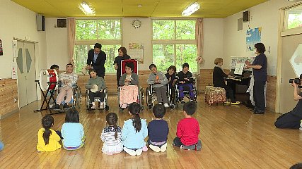 高舘の園の音楽サークルのメンバーがおととい鱒沢保育園を訪れ歌を披露しました。宮守町鱒沢にある障がい者支援施設「高舘の園」では、音楽を通じて地域の交流を深めようと、10年以上前から音楽交流会を開いています。この日は、高舘の園の音楽サークルの5人が鱒沢保育園を訪れ、先月末から週に2回練習してきたという童謡3曲を披露しました。音楽サークルのメンバーは、一緒に歌を歌ったり、曲に合わせて踊ったりする園児たちのかわいらしい姿に笑みを浮かべながら、練習の成果を披露していました。歌い終わると、園児たちは手作りのネックレスを音楽サークルのメンバーは「遊びに来てね」というメッセージ入りの折り紙をお互いにプレゼントして感謝の気持ちを伝えていました。そして、最後に園児たちは「楽しかったです」と話し、音楽サークルのメンバーとハイタッチや握手をして交流を深めていました。Copyright(C) TonoCableTelevision. All rights reserved.
