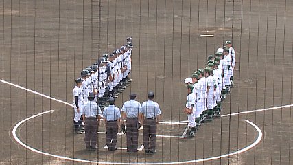 夏の高校野球岩手大会。きのう(16日・火曜日)初戦を迎えた緑峰高校でしたが、残念ながら2回戦へ駒を進めることは出来ませんでした。雨による順延のため、1日遅れとなった大船渡高校との初戦。緑峰高校は、今大会注目のピッチャー擁する大船渡高校相手に臆することなく試合に臨みました。1回の表、緑峰高校は、大船渡高校の猛攻を受けます。先頭バッターからヒットを立て続けに許すと、1アウト2塁1塁の場面で3ベースヒットなどを打たれ初回から3点のリードを許してしまいます。なんとか、1点を奪いたい緑峰高校ですが、相手ピッチャーの巧みな投球術を前に出塁することが出来ません。それでも緑峰高校は、テーマに掲げていた全力プレーで、最後まで諦めず守備では打球を必死に追いかけ攻撃では積極的にバットを振ります。そして迎えた5回裏、4番の菊池将太がボールをしっかり見てフォアボールを選び出塁します。このチャンスにベンチも応援スタンドも必死に声援を送ります。しかし、この後打線が続かず0対14の5回コールドで敗れ、残念ながら初戦突破とはなりませんでした。遠野高校はきょう(17日・水曜日)、花巻球場で水沢高校と対戦しました。2回表で先制点を許した遠野高校はその裏、先頭バッターの菊池大事がボールをしっかり見てフォアボールを選び出塁すると、佐々木陽翔が送りバントを決めます。このチャンスに、佐々木勁吾。右中間にヒットを放ち、同点に追いつきます。遠野高校の先発は、エースナンバー「1」をつけた菊池鉱士朗。3回表、2アウトをとるもその後リズムを崩され水沢高校に得点を許してしまいます。勢いをとめたい遠野高校は、ピッチャー畑山太亮に交代、ピンチを切り抜けます。その後、なんとか得点をあげたい遠野高校。相手のファインプレーもあり、追加点をあげられないまま1対9と8点差で7回を迎えます。先頭バッター、キャプテンの菊池錬がフォアボールを選び塁に出ます。続く佐々木亮太と石田将太が倒れ、バッター松田幸大、センターフライに倒れゲームセット。1対9、遠野高校は健闘したものの残念ながら2回戦で姿を消しました。スタジオへアトコメ選手一人一人のそしてチーム全体としてのたくさんの思いの中大会に臨んだ選手たち、戦いに敗れ涙する場面では取材しているわたしたちも胸が熱くなりました。3年生は一緒に戦ってくれた後輩達に思いを託し、新たな目標に向かってがんばってほしいです。そして、1・2年生、新たなチームで頑張ってください。わたしたちは、来年のこの時を楽しみにしています。Copyright(C) TonoCableTelevision. All rights reserved.