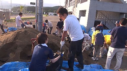 これからの台風シーズンに備えて先週水曜日(17日)、市職員が土のう作りを行った様子が届きましたのでお伝えします。この土のう作りは、これからの大雨や台風による浸水被害に備え、災害の無い安心・安全なまちづくりを進めようと遠野市が実施しました。この日は、市職員67人が参加し、2人1組となって土のう袋にスコップで5・6杯程度、およそ20キログラムの土を入れていく作業を繰り返し行ったということです。そうした中、1時間ほどの作業で900袋の土のうが作られたということです。市では、過去の大雨や台風において備蓄していた土のうが市民の住居などの浸水対策に役立てられ被害を軽減した事例があります。市職員が作った土のうは、これからの大雨や台風によって浸水の恐れがある場所で優先的に使われるということです。Copyright(C) TonoCableTelevision. All rights reserved.