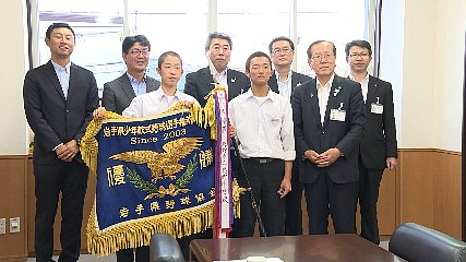 文部科学大臣杯第11回全日本少年春季軟式野球大会県予選で、見事優勝した遠野中学校野球部が、おととい(24日・火曜日)本田市長にその報告をしました。この日、とぴあ庁舎を訪れたのは遠野中学校の野球部の伊藤楓真キャプテンと太田遥稀部長などです。遠野中学校野球部は、今月1日(日曜日)に行われた県予選決勝で、水沢南中学校に5対3で勝ち、全国大会出場を決めました。伊藤キャプテンと太田部長から報告があった後、齋藤監督は、「毎日の走り込みの結果が積極的な走塁で攻めるチームとして機能していた、選手たちも自信を持って戦っていた」と、県予選での選手たちの様子も伝えていました。報告を受けた本田市長は、「全国の強豪と戦うことは仲間との絆や自分自身の成長など勝ち負け以外にも多く得る機会、けがをしないよう体調管理に気をつけながら、これからの練習に励んでください」と、全国大会の活躍を期待していました。なお、遠野中学校野球部は、来年静岡県で開催される全国大会に、岩手県代表として出場するということです。Copyright(C) TonoCableTelevision. All rights reserved.